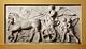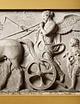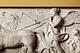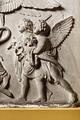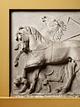 Nemesis, der her ses på sin vogn, er i græsk mytologi den retfærdighedsgudinde, der straffer og belønner efter fortjeneste. I dette relief ses hun på sin vogn med to heste for, en OBBEDIENTE, som der står på seletøjet (det betyder lydig på italiensk) og en stejlende INOBBEDIENTE (ulydig), der får af hendes pisk. Bag vognen ses to genier eller skytsengle. På linie med den ulydige hest ses straffens genius PENA (italiensk for straf), som der står på sværdet, han holder, og på linie med den lydige hest ses belønningens genius PREMIO, som der står på det overflødighedshorn, han holder sammen med nogle laurbærkranse og en Merkurstav. Vognens hjul er også forsynet med indskrifter: UBERTA (rigdom), SVENTURA (ulykke), PENURIA (trang) og VENTURA (lykke). I baggrunden anes dyrekredsen med Vægten foroven.