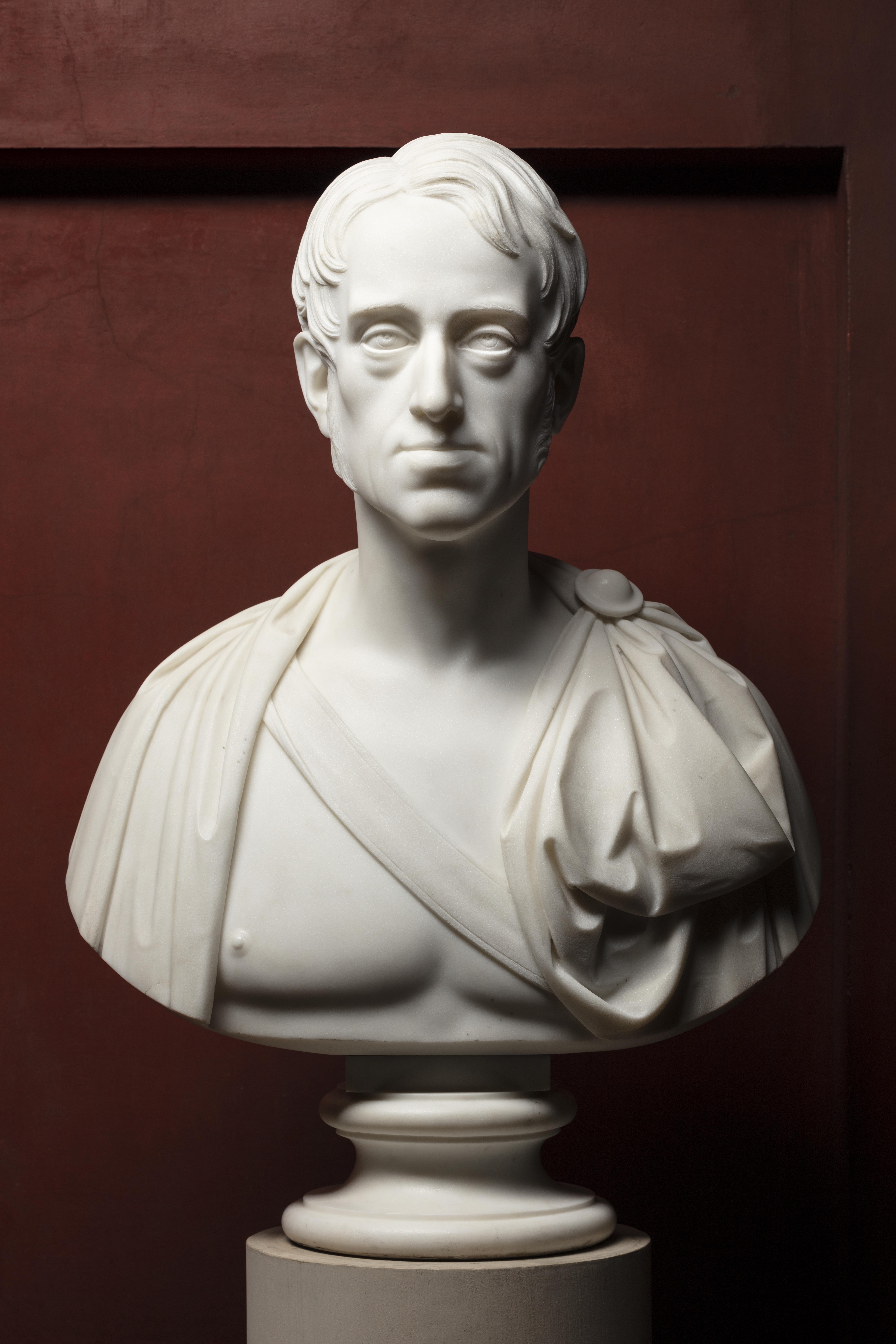 - Til busten af Frederik 6. (1768-1839) har Thorvaldsen valgt den antikke busteform med det store udsnit af brystet med draperi over skuldrene og sværdbånd over brystet. Kongen er med sine karakteristiske træk – det magre ansigt, den store næse og den fremspringende underkæbe – let genkendelig.