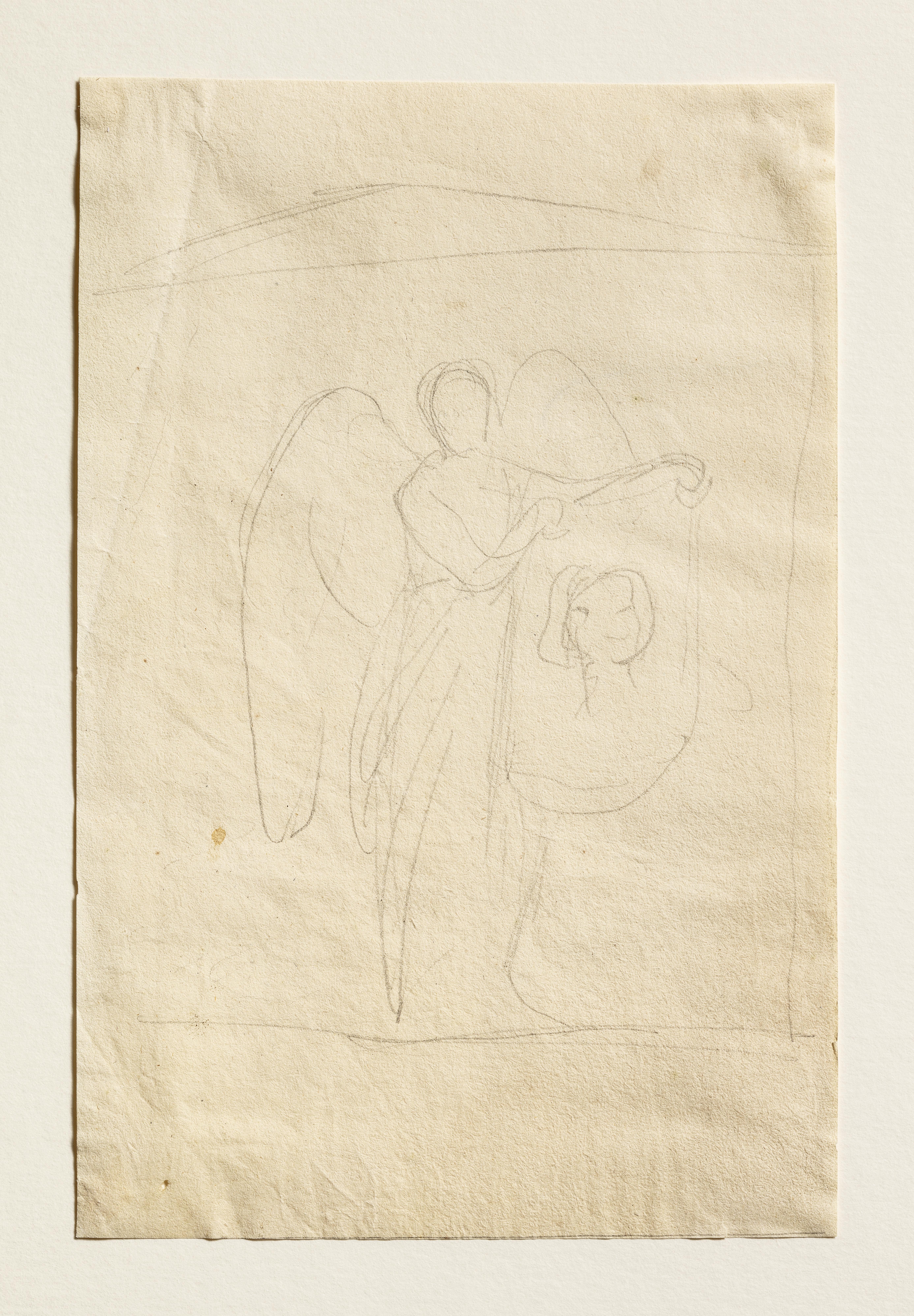 Engel der holder et klæde med en portrætskitse til ubekendt gravmæle