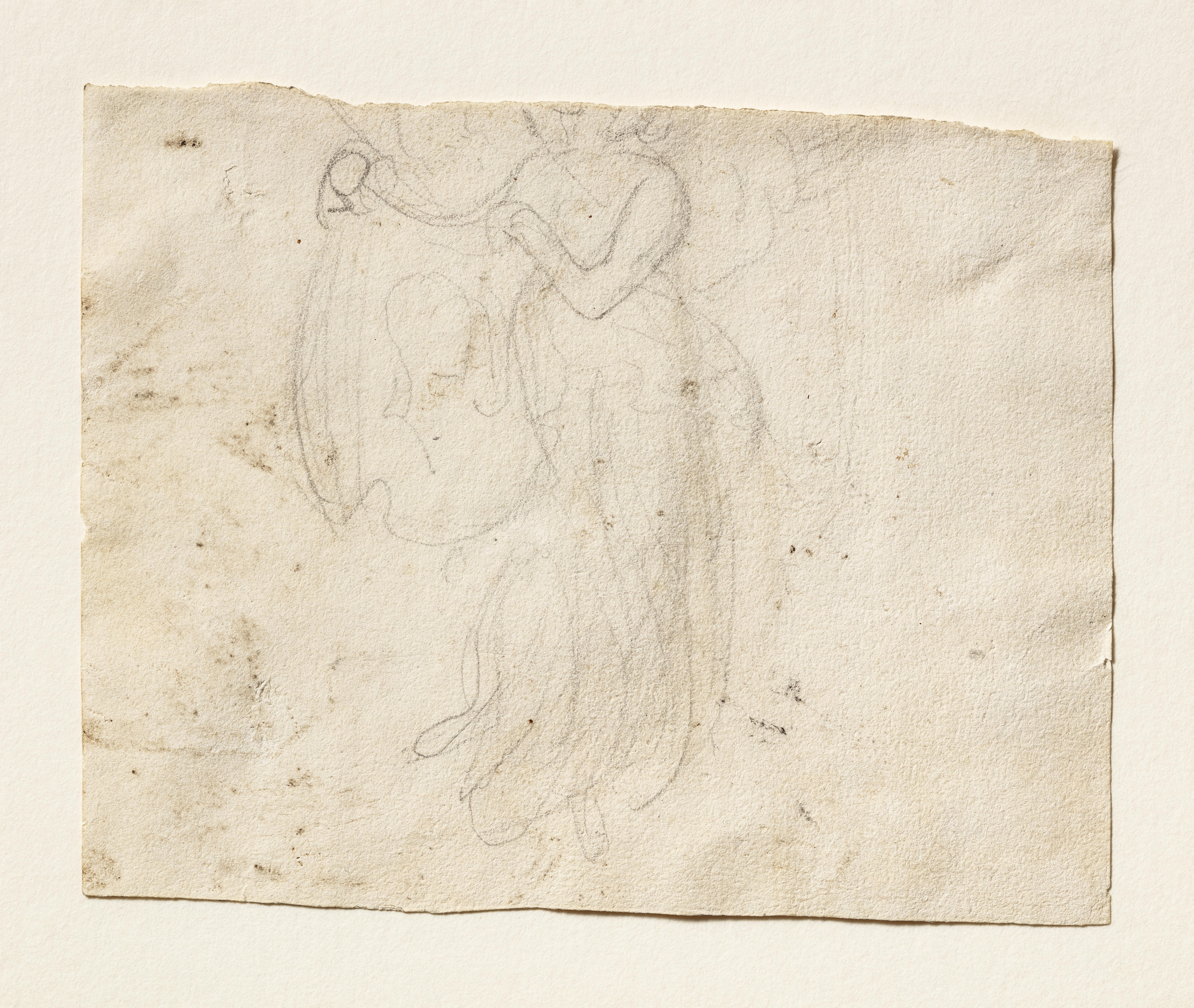 Svævende engel der holder et klæde med portrætskitser til ubekendt gravmæle