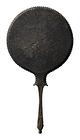 På dette spejl er en scene fra Homers Iliade gengivet. Gudinden Thetis overrækker sin søn Achilleus hans nye våben fremstillet af smedeguden Hefaistos. Til venstre står gudinden Athene, til højre Automedon, Achilleus’ vognstyrer. I baggrunden er en tempelfacade. Athene er formentlig den olympiske gud, som hyppigst er identificeret på de etruskiske spejle. Dette hænger sammen med hendes letgenkendelige attributter: hjelm, spyd, ægide (skjold eller brystpanser med gorgonen Medusas hoved) og ugle. Mange af de etruskiske spejle har indgraverede figurdekorationer på bagsiden. Det er ofte toilettescener med unge mænd og kvinder, der bader, klæder sig på og smukkeserer sig. De mest populære motiver var dog scener fra den græske mytologi, som i det aktuelle tilfælde. De mytologiske karakterer på spejlene kan ofte identificeres ved indskrifter på etruskisk eller latin. Disse spejlindskrifter er samtidig en vigtig kilde til vores viden om etruskisk litteratur og kendskabet til de etruskiske guder.